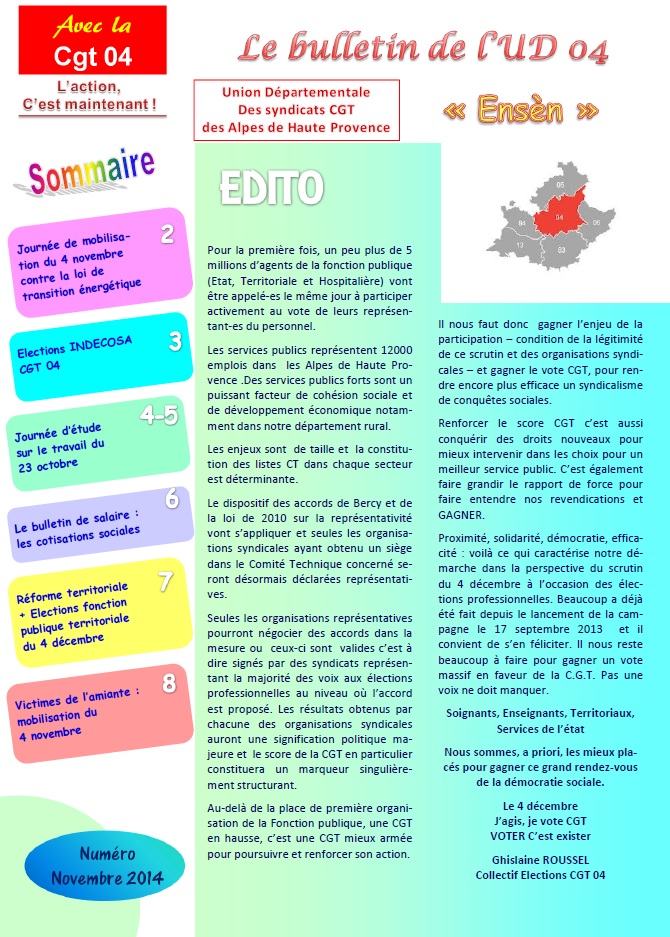 2 décembre 2014 – Le journal de l’UD CGT 04 du mois de novembre 2014
