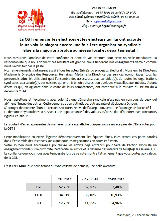 1er décembre 2014 – Le journal de la CGT de l’hôpital de Manosque est sorti