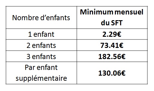 Ainsi, les agents travaillant à temps partiel ne doivent pas recevoir un supplément familial de traitement inférieur au minimum mensuel obligatoire (73.41 pour les agents ayant 2 enfants, 182,56 pour les agents ayant 3 enfants…).