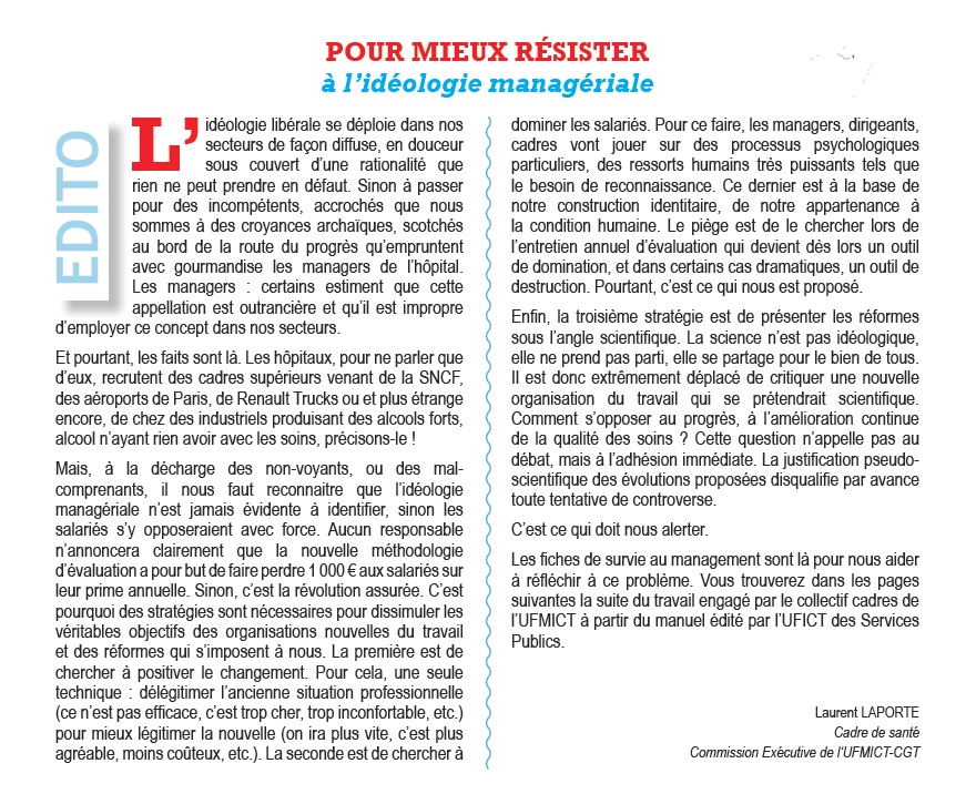 2 juillet 2017 – Encart Options numéro 628 – Pour mieux résister à l’idéologie managériale