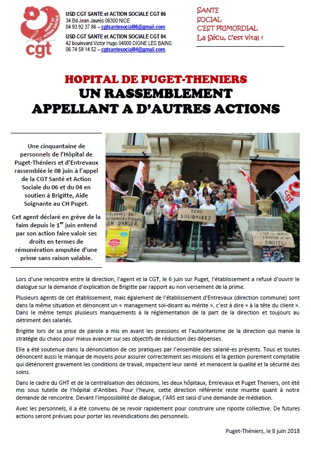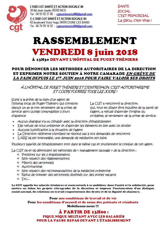 Dans l’établissement de Puget Théniers, dans notre région, une aide-soignante vient de débuter une grève de la faim car ses droits sont bafoués.