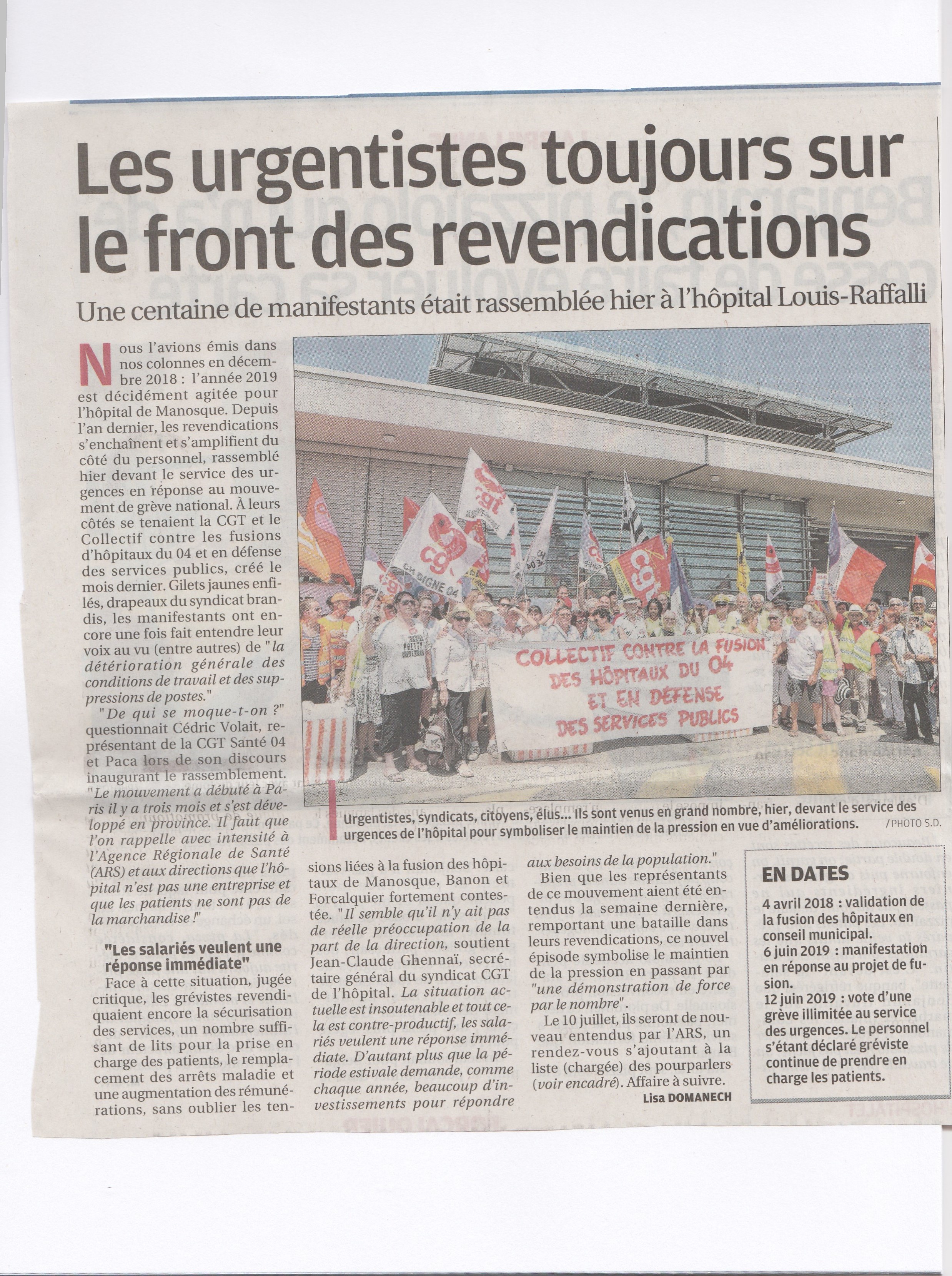 Le premier, c’est l’interview dans HPI (Haute Provence Info) sur deux grandes pages du nouveau directeur de l’hôpital de Manosque, qui est en train de prendre le contrôle de l’ensemble des hôpitaux et EHPAD du département du 04 par le biais d’extension de directions communes ou de processus de fusion pour le sud du département.