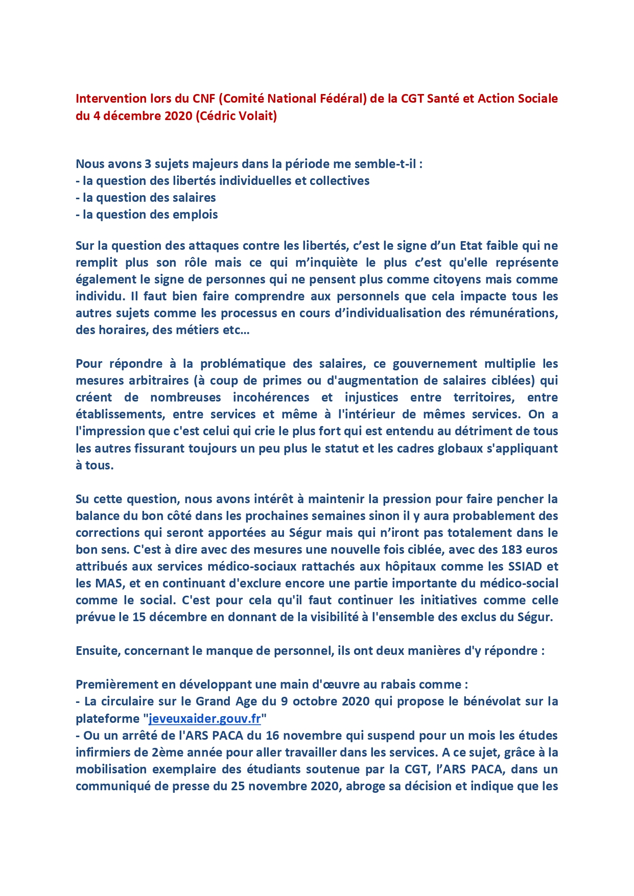 Intervention de l’UD CGT 04 lors de la manif du 5 décembre 2020 :