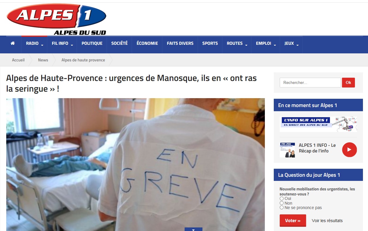 1er juillet 2019 – Urgences de Manosque, ils en « ont ras la seringue » ! (Interview radio Alpes 1)